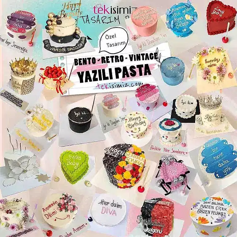 Yazılı Pasta (Bento, Retro, Vintage) | Özel Günler İçin Şık ve Lezzetli Tasarımlar